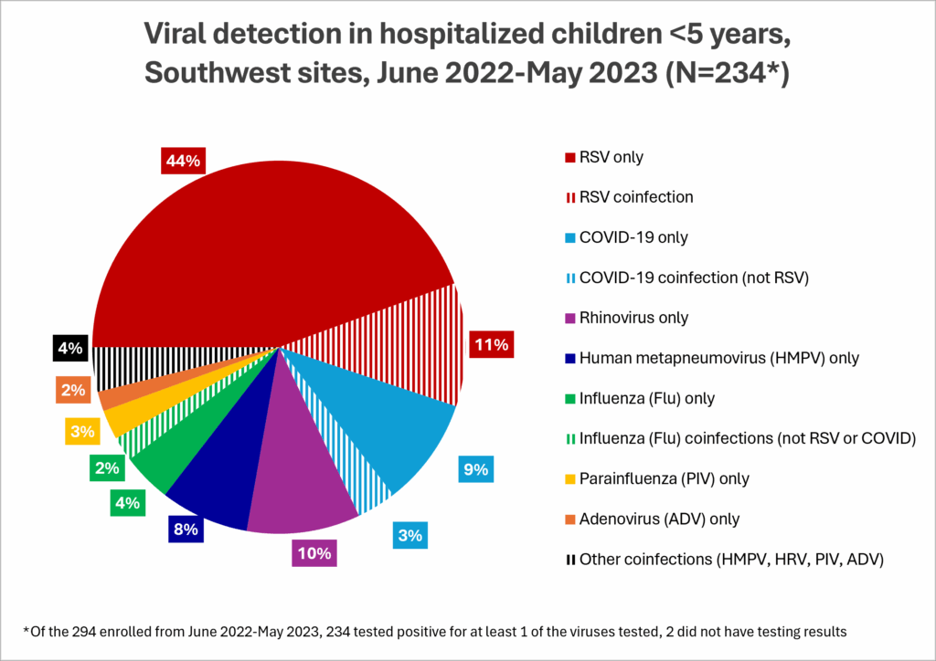 - Before RSV prevention products were available, we found that more than half of AI/AN children hospitalized for respiratory illness in the study had RSV. Other common viruses found in hospitalized children included COVID-19, rhinovirus, HMPV, and influenza (or “flu”).