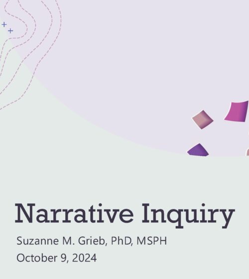 Developed by Suzanne M. Grieb, PhD, MSPH. Slides used for a narrative inquiry training and providing key concepts.