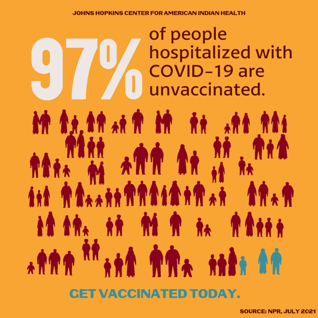 This toolkit contains 4 social media graphics and an accompanying message highlighting the statistic that 97% of people hospitalized are unvaccinated.