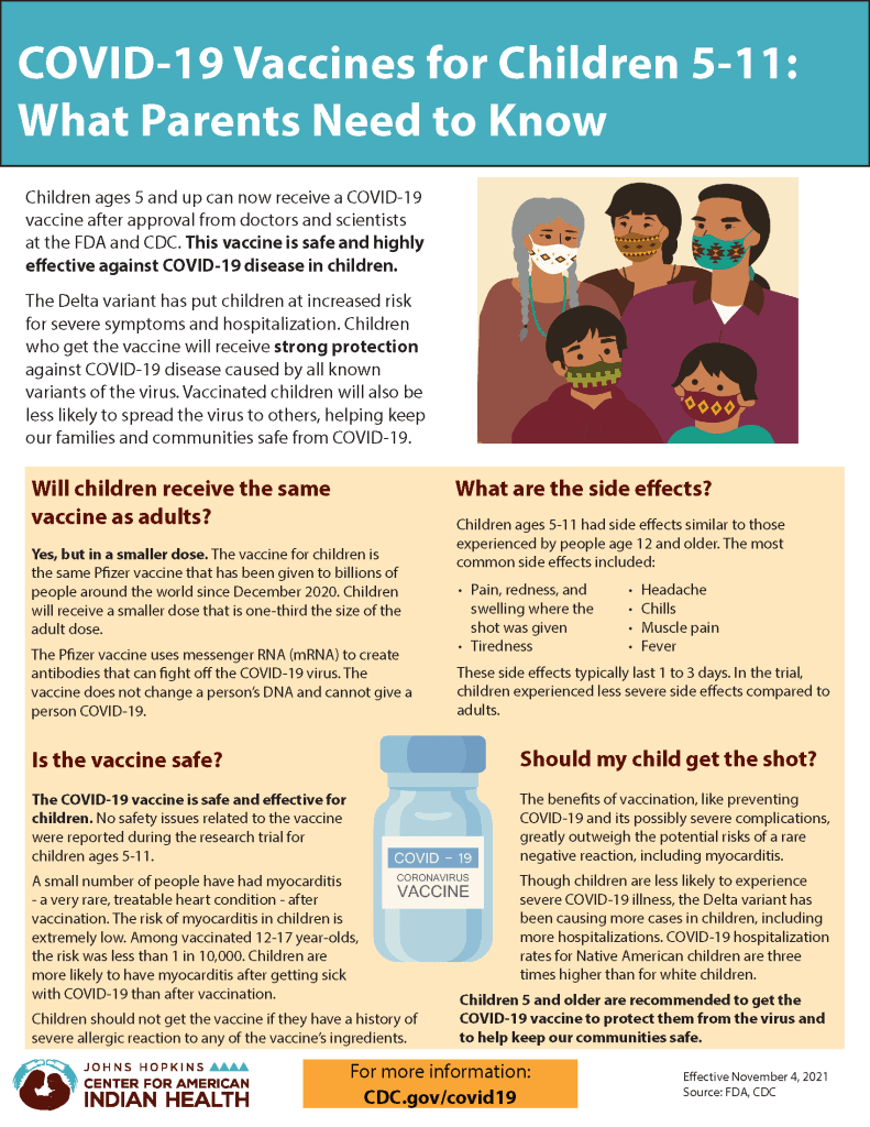 Children ages 5-11 can now receive a #COVID-19 #vaccine. This factsheet answers important questions about the safety and side effects of the vaccine and explains the importance of getting your child vaccinated.
