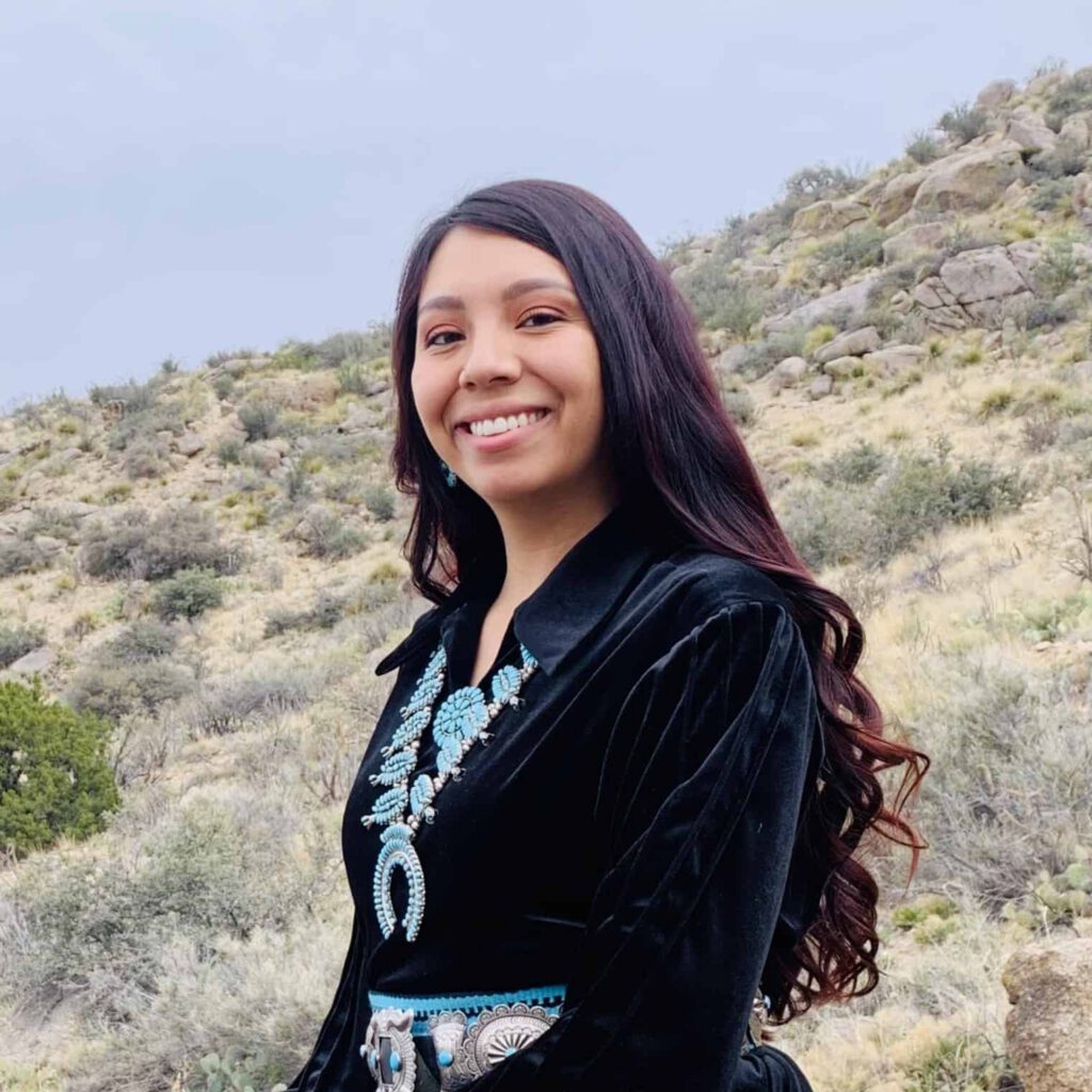 Jessica Meese, MS, CCC-SLP is Diné and from Tohlakai, NM on the Navajo reservation. She is Naaneesht’ézhi Táchii’nii (Charcoal Streaked of the Red Running into the Water) and born for Tł’ááshchí’i (Red Bottom People). Her maternal grandfather’s clan is ‘Áshįįhi (Salt People) and her paternal grandfather is Bilagáana. She joined the Center for Indigenous Health in January of 2024.